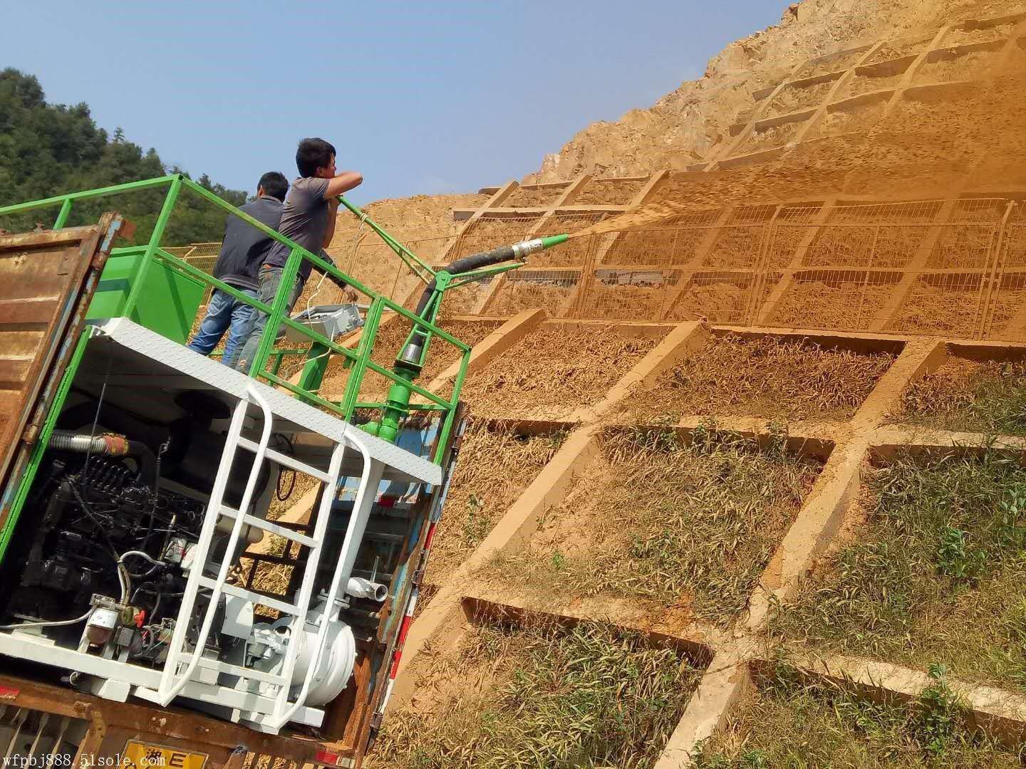 客土喷播机是从国外进口的一种植被绿化设备,已成为高速公路(铁路)边坡绿化,矿山复绿,沙漠防治,堤坝防护,大规模草坪改造的绿化项目。等有效性的植被确立方式。